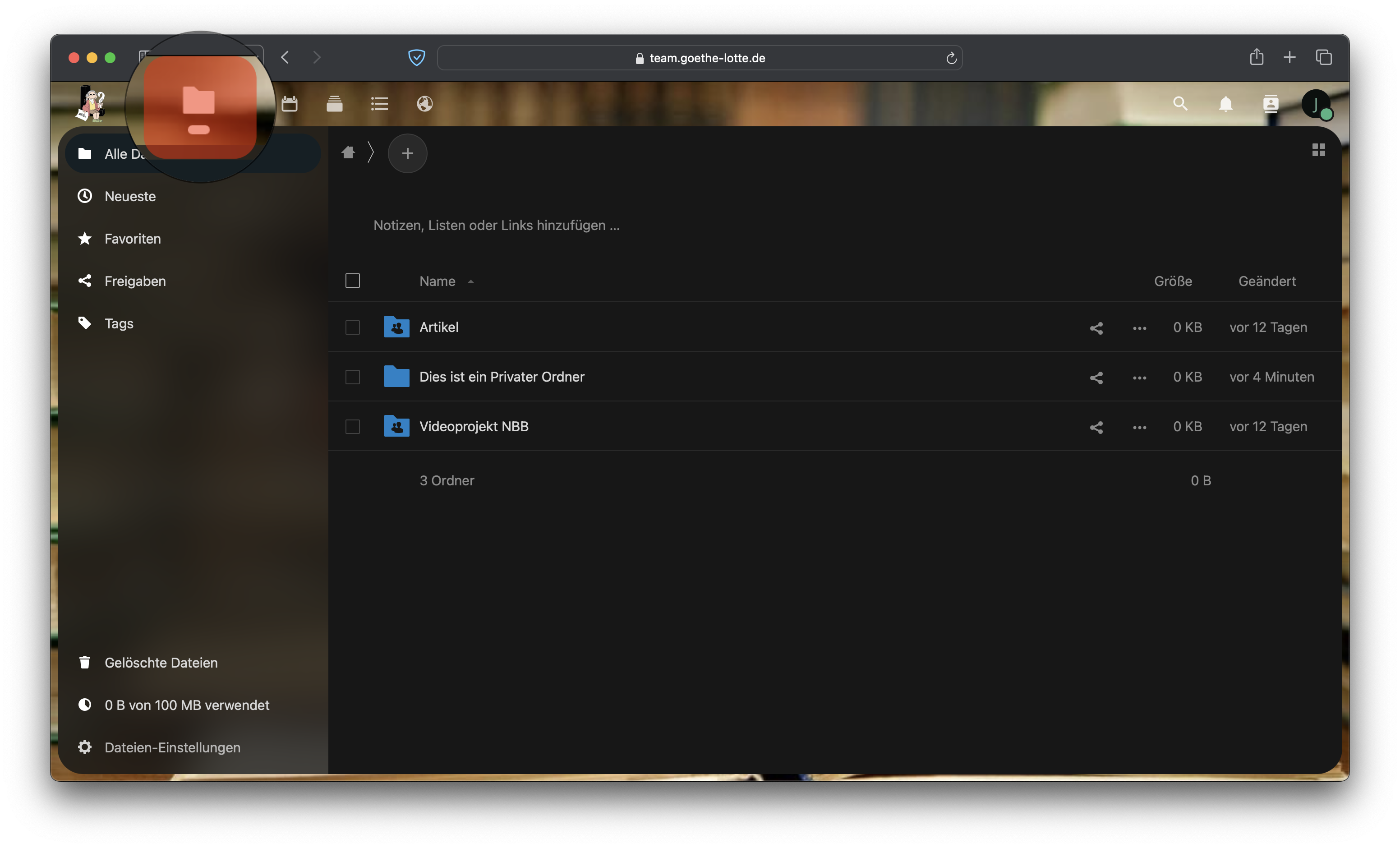 Zusätzlich dazu gibt es Gruppenordner. Diese erkennst du an dem besonderen Zeichen. Diese Ordner sind von deinem Privaten